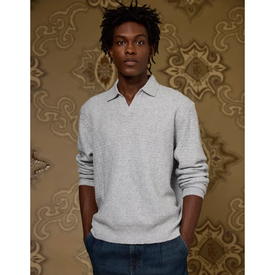 AE x Tru Kolors Long Sleeve Sweater Polo – Heather Gray