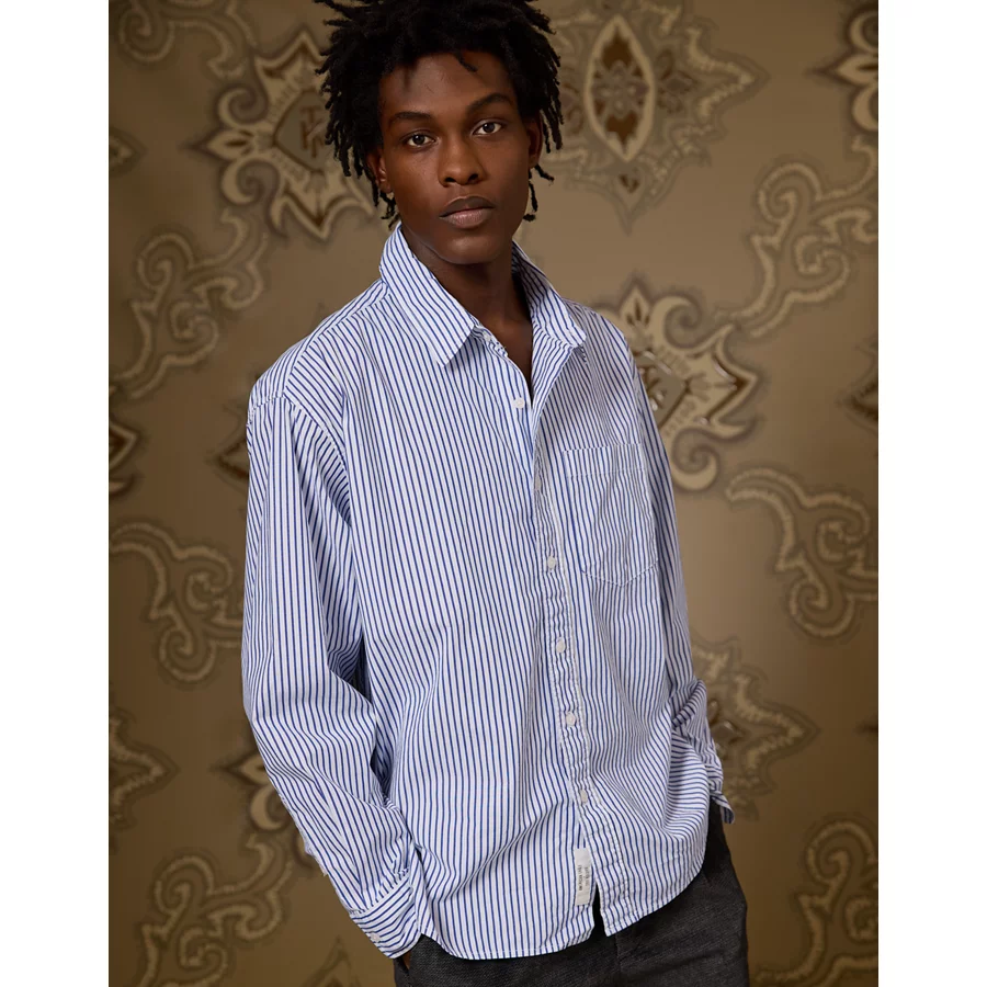 AE x Tru Kolors Poplin Striped Shirt - Light Blue