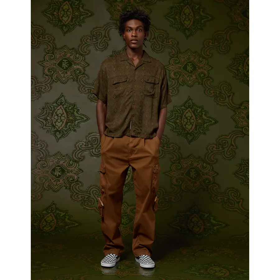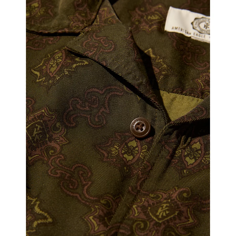 AE x Tru Kolors Short Sleeve Paisley Camp Shirt – Olive