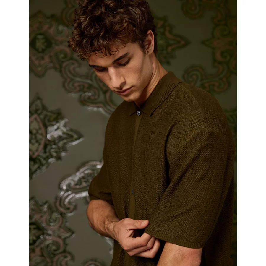 Pearlized button-up front featuring AE x Tru Kolors logo