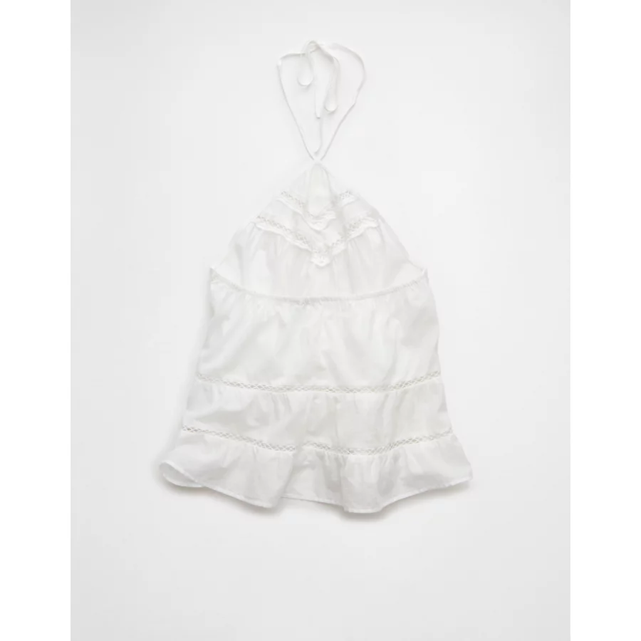AE Y-Neck Lacy Halter Top – White