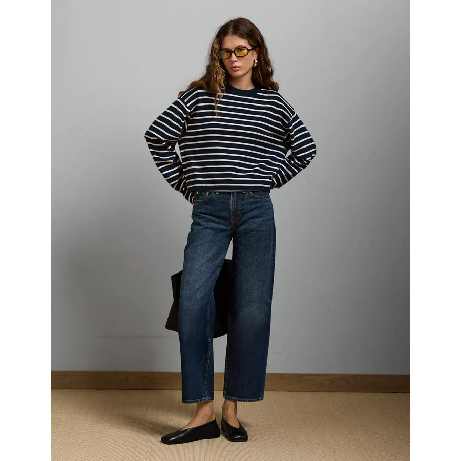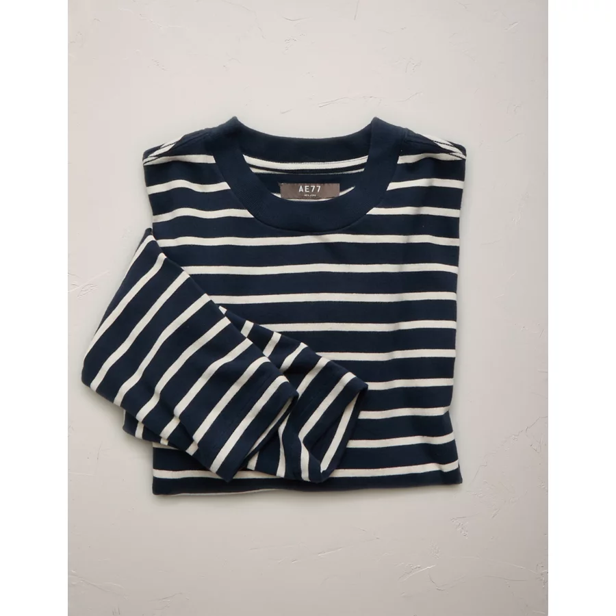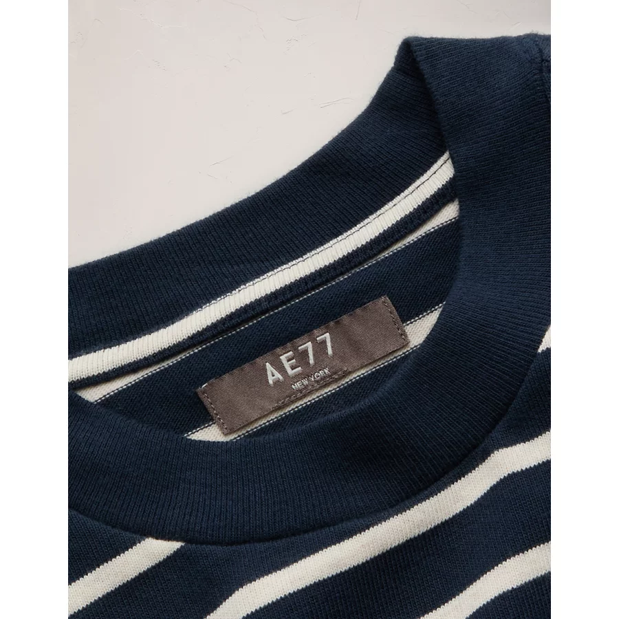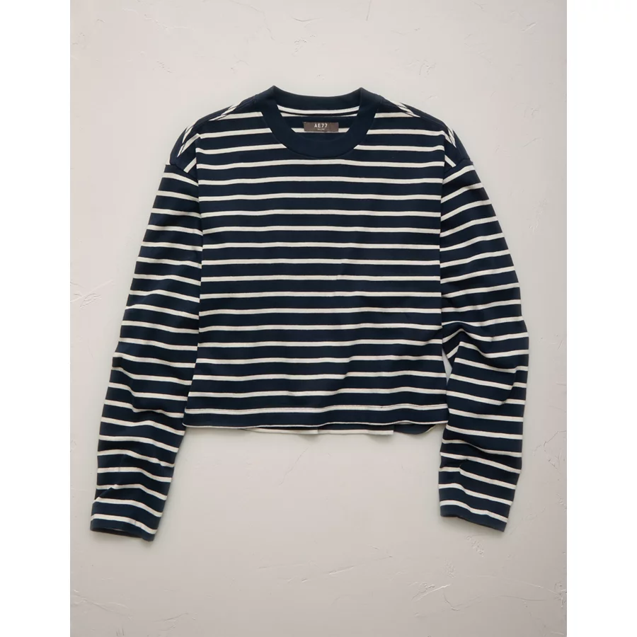 AE77 Premium Boxy Long-Sleeve Cropped T-Shirt – Navy