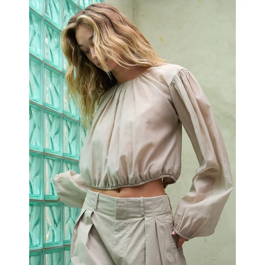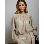 AE77 Premium Bubble Blouse – Taupe