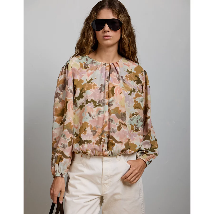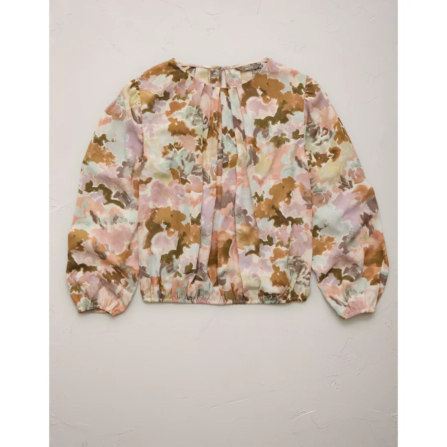 AE77 Premium Bubble-Hem Chiffon Blouse – Multi