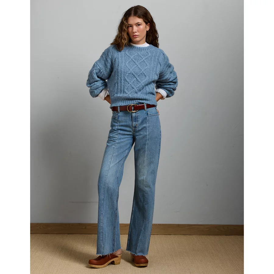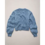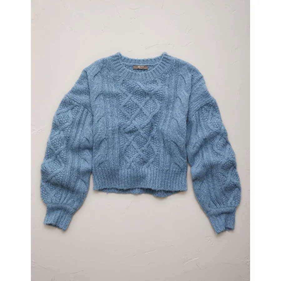 AE77 Premium Cable Sweater – Light Blue