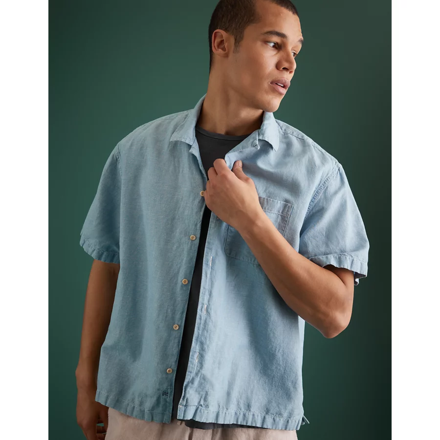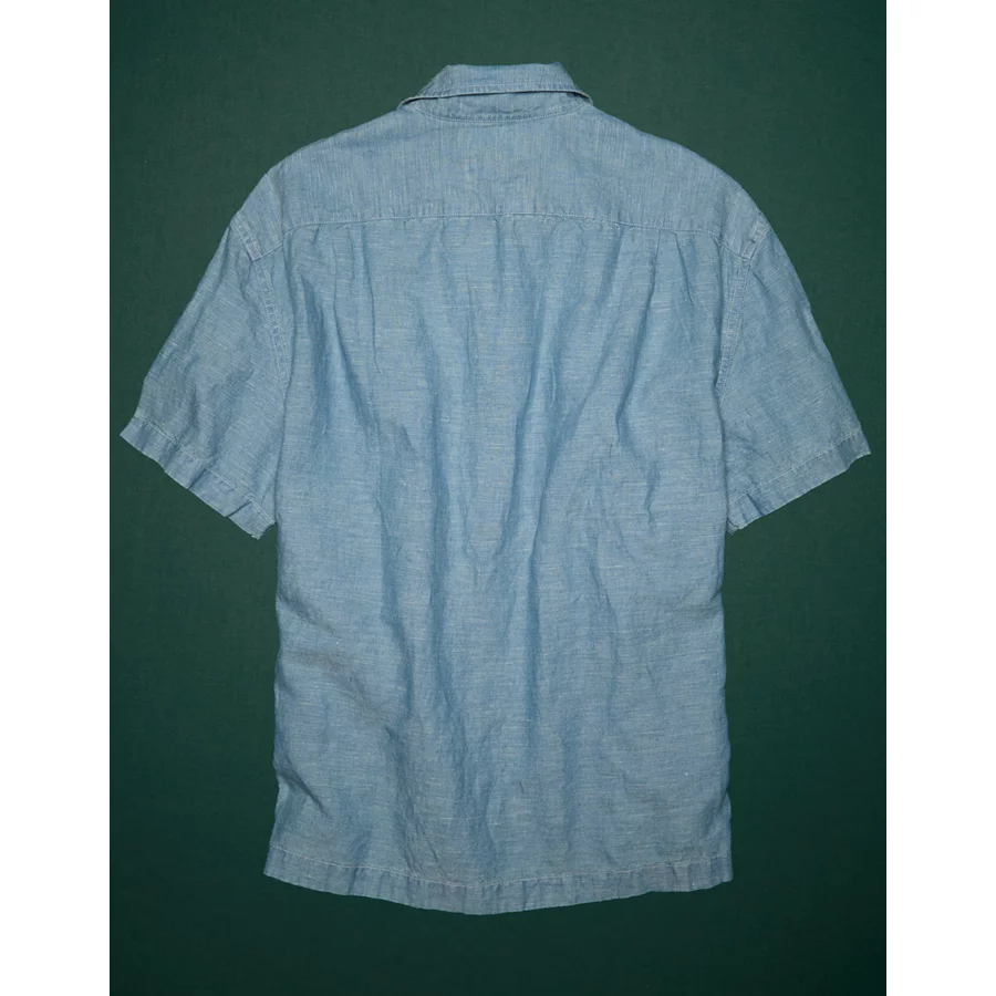 AE77 Premium Chambray Camp Collar Button-Up Shirt – Chambray Blue