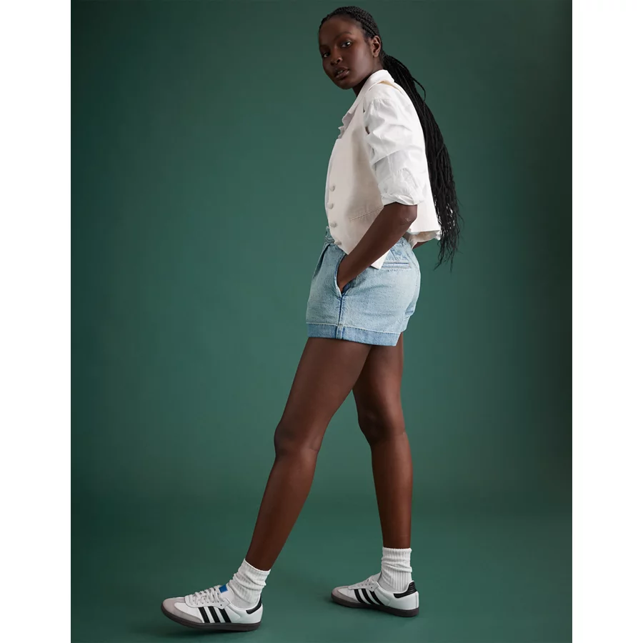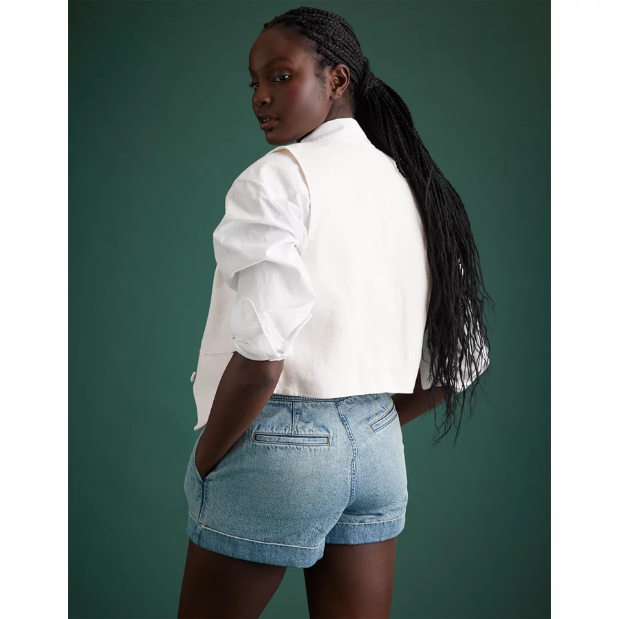 AE 11″ Dreamy Drape Stretch High-Waisted Jort – Light Tinted Wash