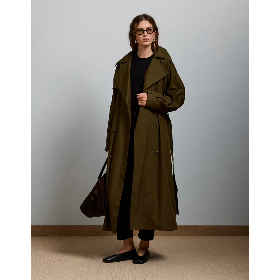 AE77 Premium Dolman Trench Coat – Olive
