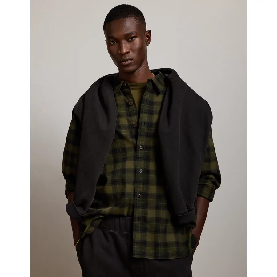 The quintessential workshirt cut in heavyweight flannel, ready to layer over your favorite AE77 tees