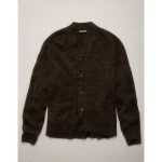 AE77 Premium Fuzzy Cardigan – Dark Brown