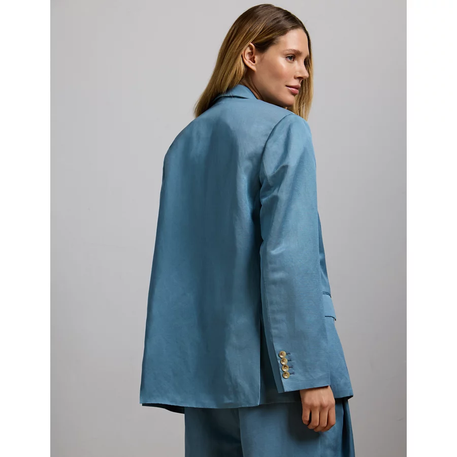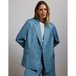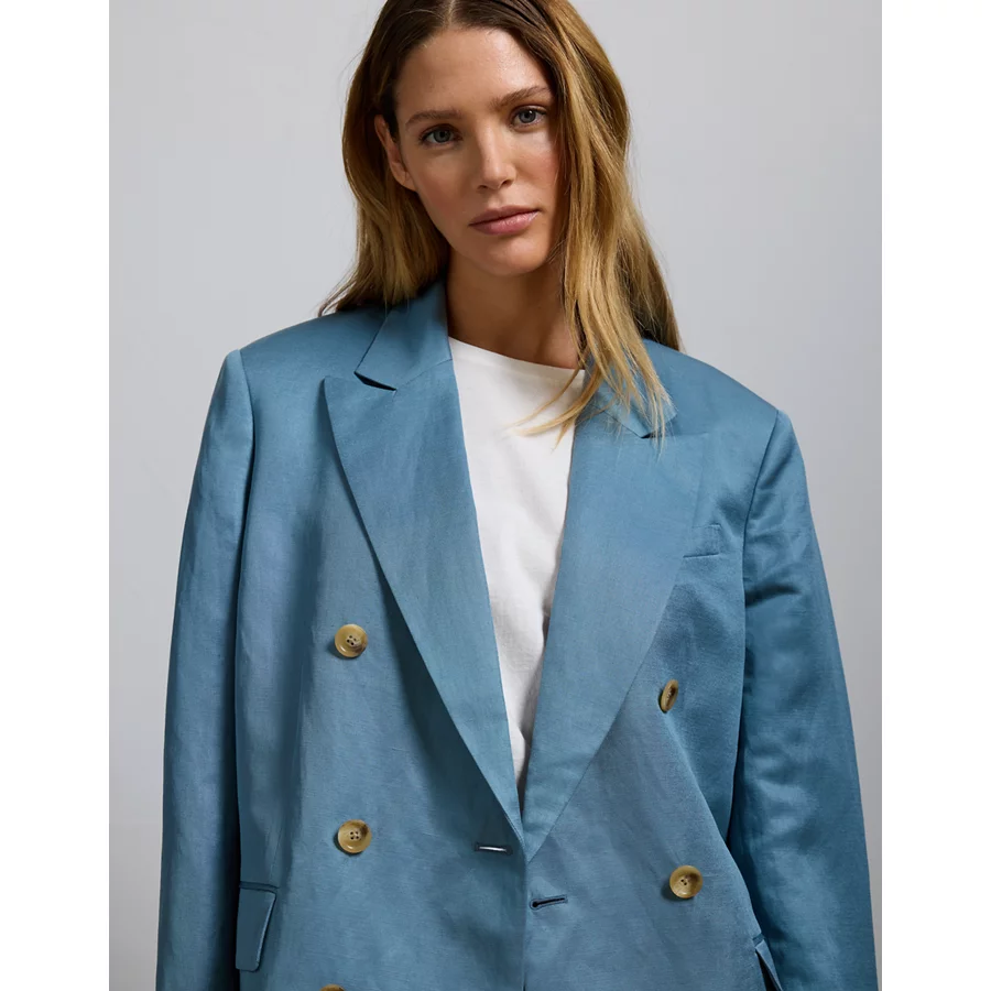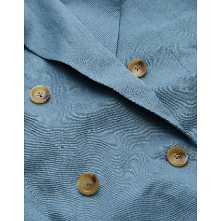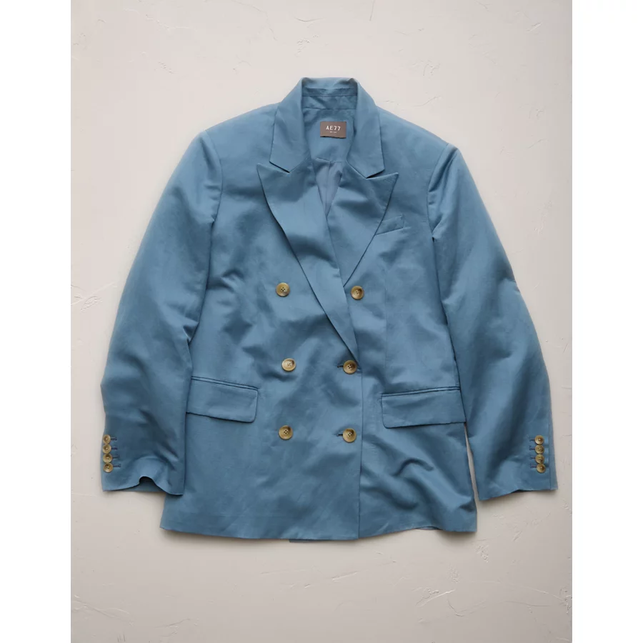 AE77 Premium Linen-Silk Blend Double-Breasted Blazer – Blue