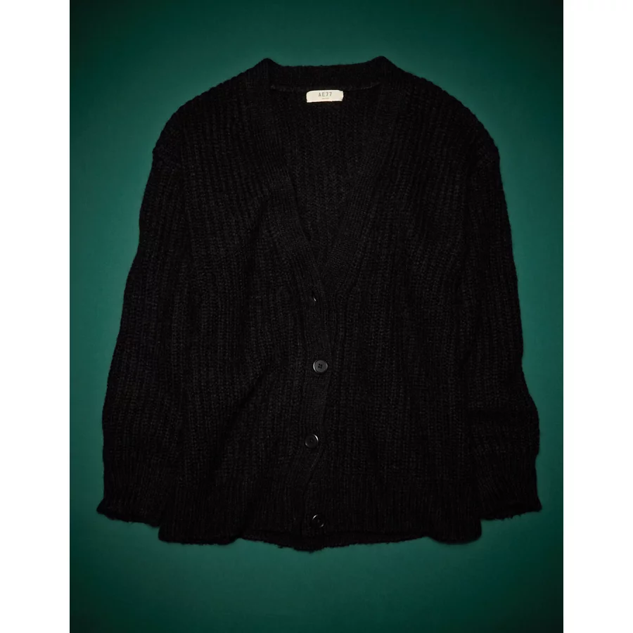 AE77 Premium Mohair Boyfriend Cardigan – Charcoal