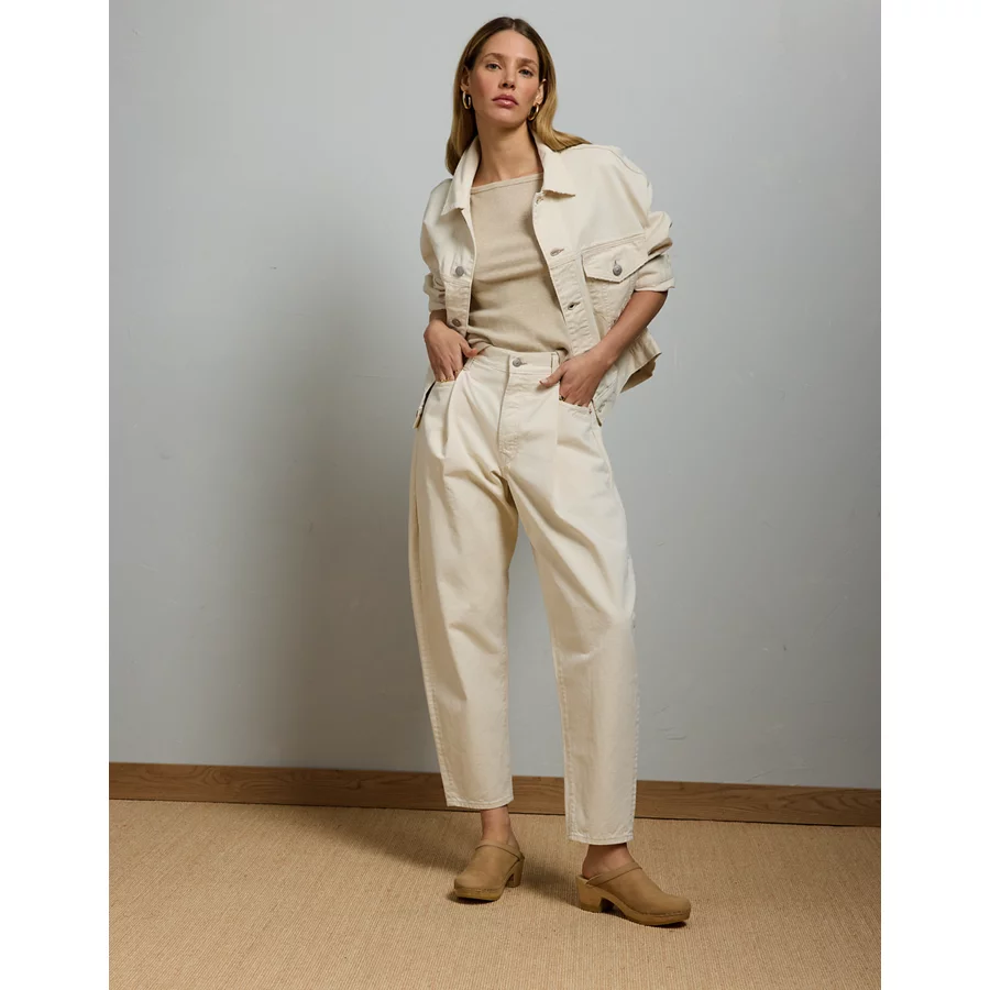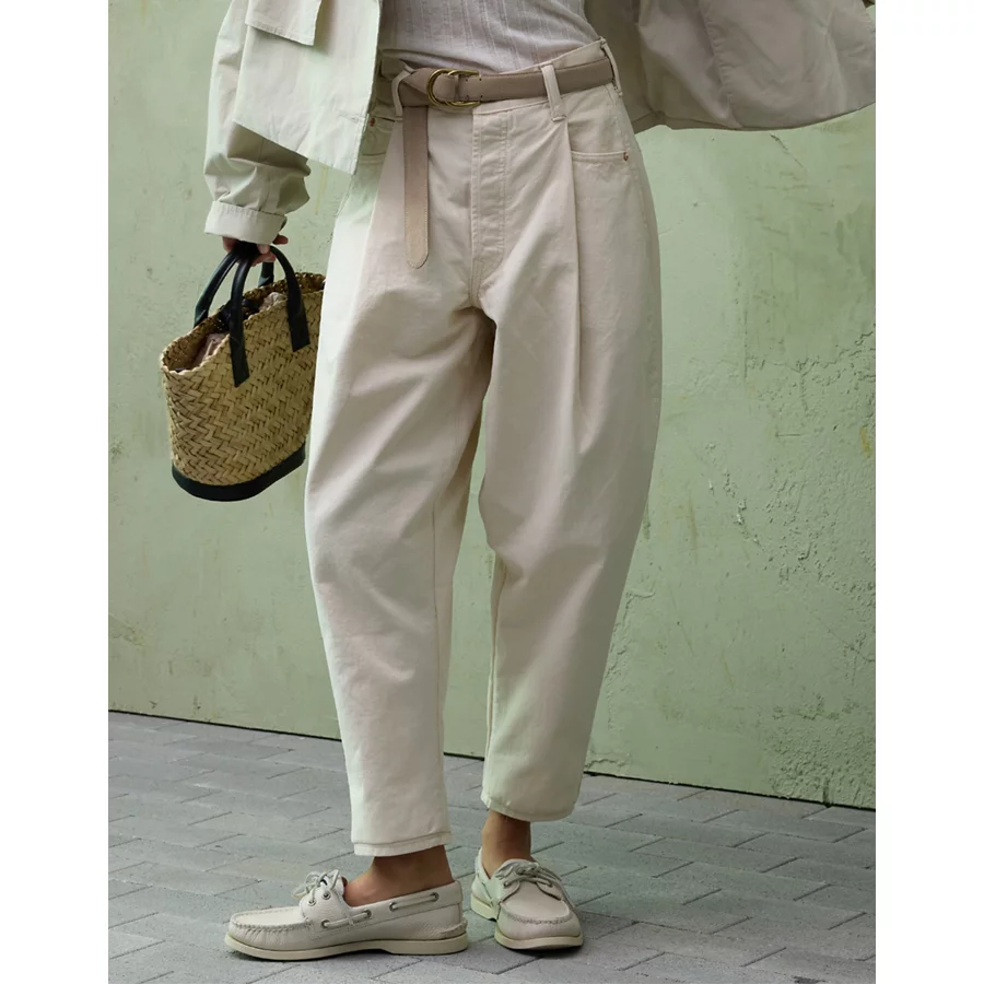 AE77 Premium Pleated Barrel Jean – Natural