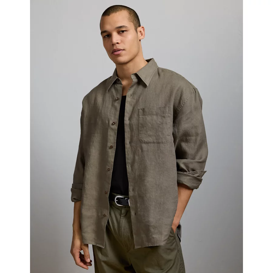 AE77 Premium Relaxed Linen Button-Up Shirt – Green