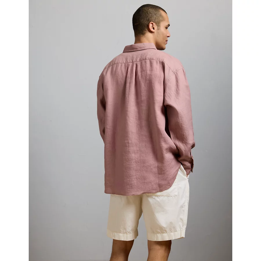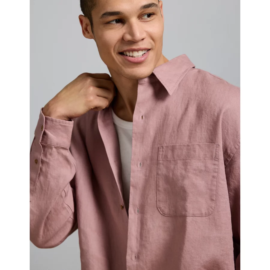 AE77 Premium Relaxed Linen Button-Up Shirt – Mauve