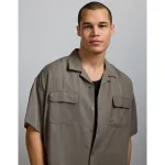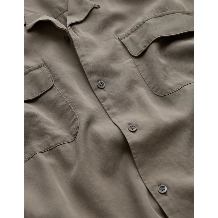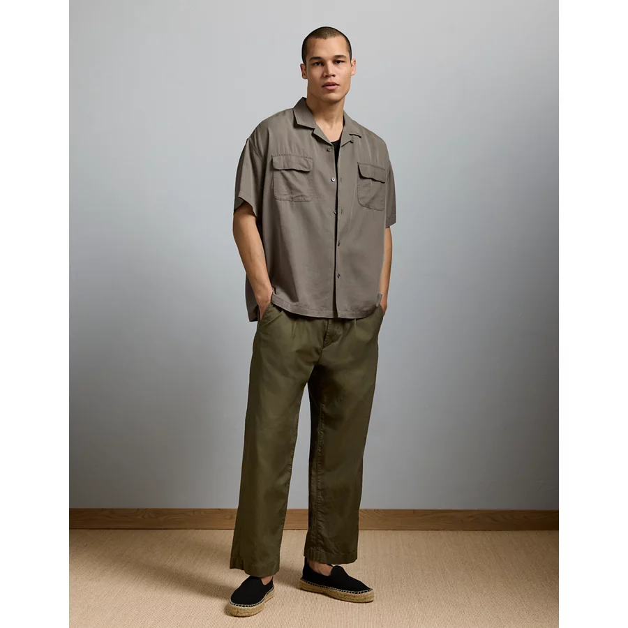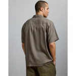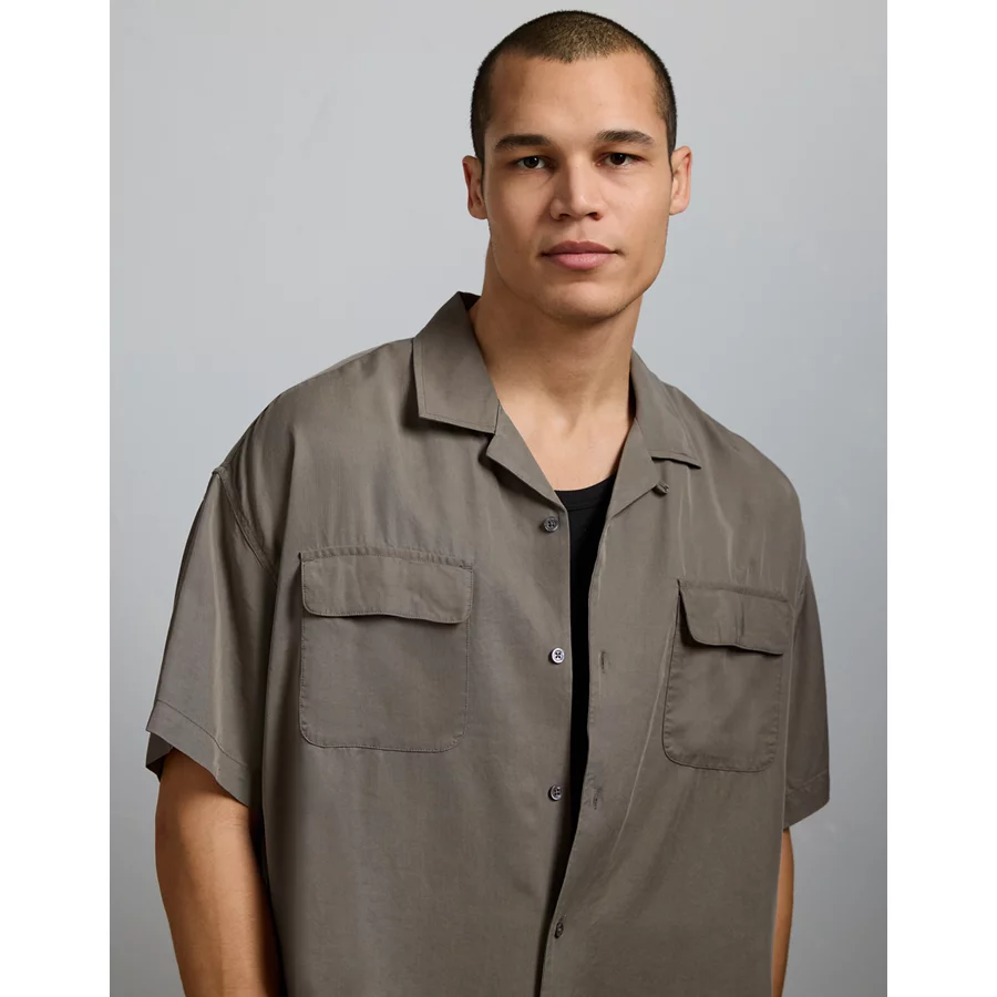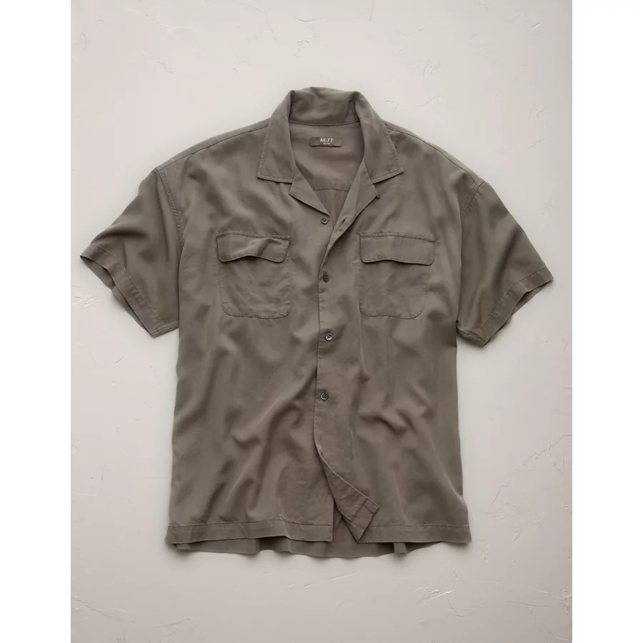AE77 Premium Relaxed Short-Sleeve Button-Up Shirt - Khaki