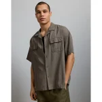 AE77 Premium Relaxed Short-Sleeve Button-Up Shirt – Olive