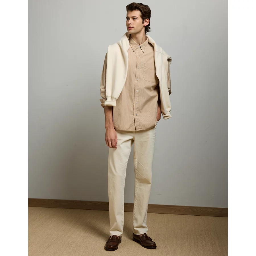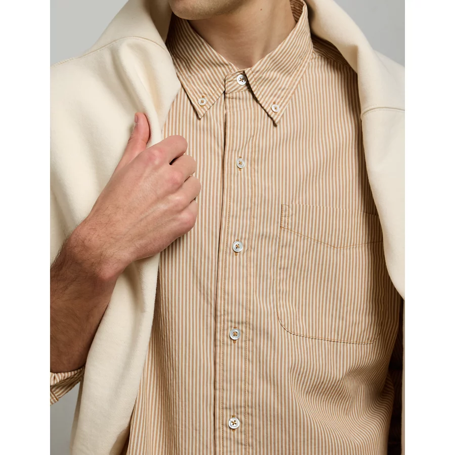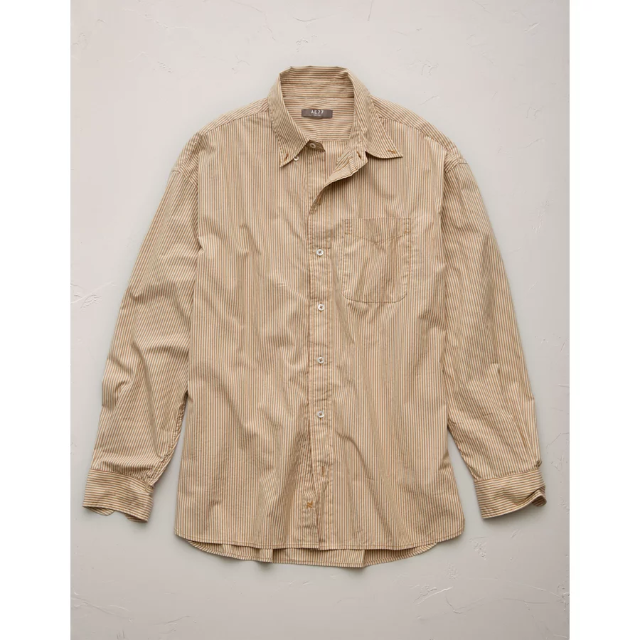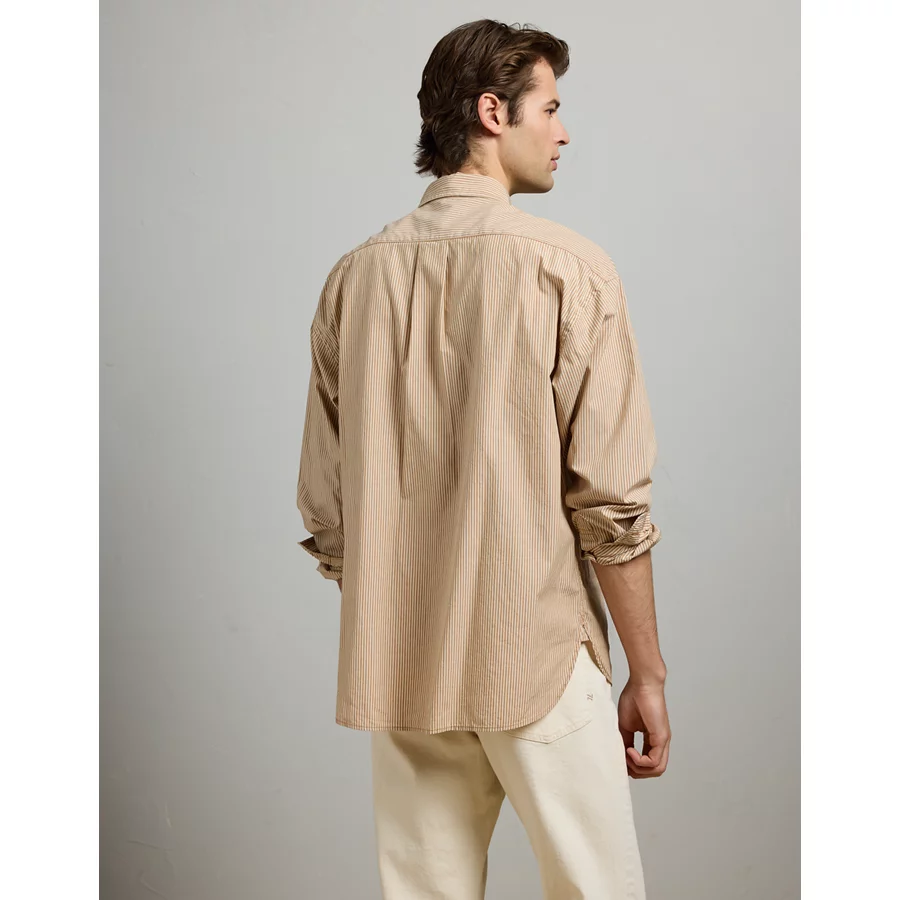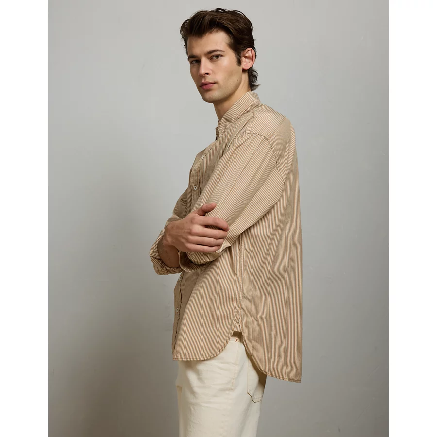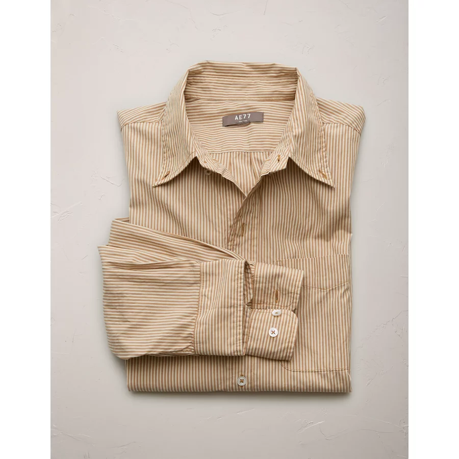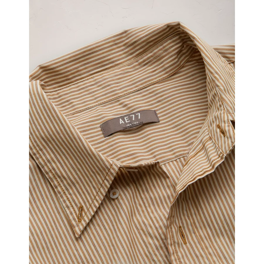 AE77 Premium Relaxed Striped Poplin Button-Up Shirt – Brown