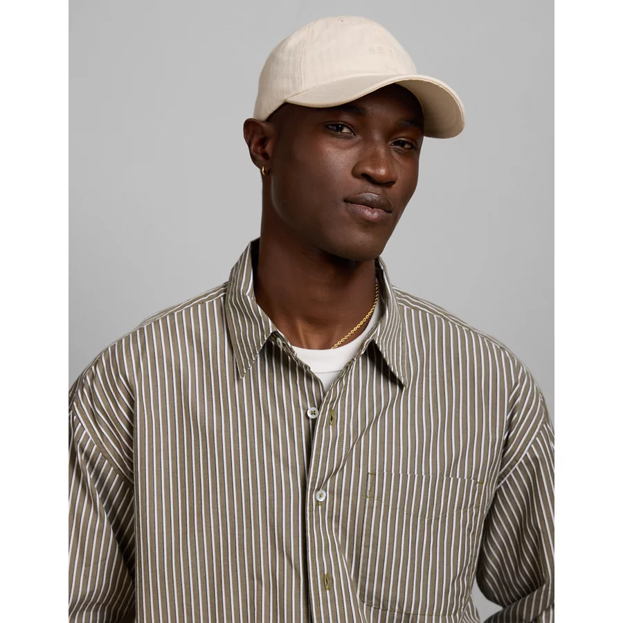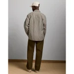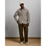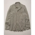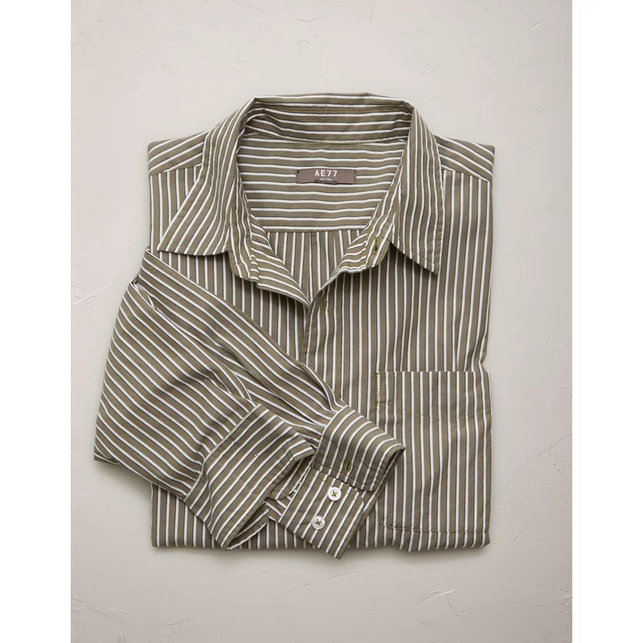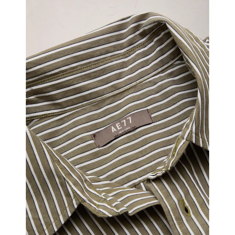 AE77 Premium Relaxed Striped Poplin Button-Up Shirt - Khaki