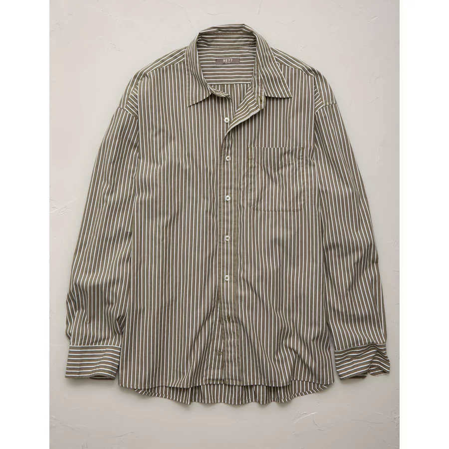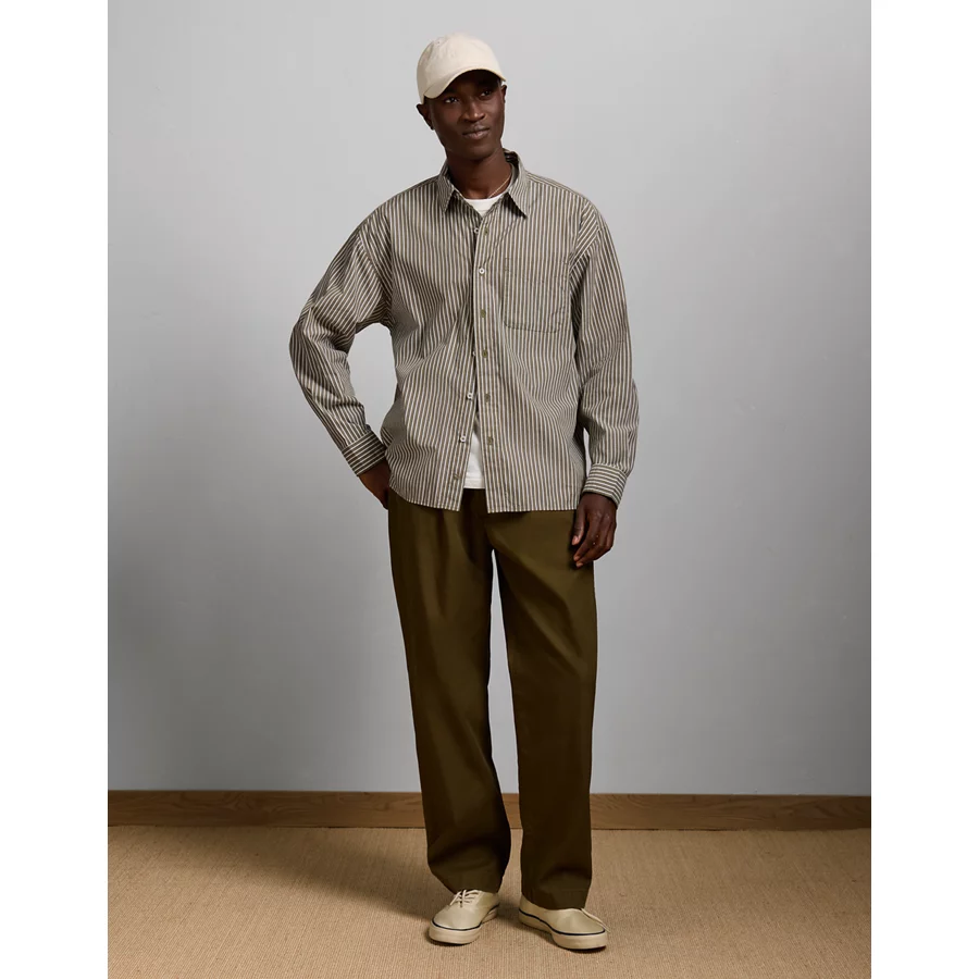 AE77 Premium Relaxed Striped Poplin Button-Up Shirt – Olive