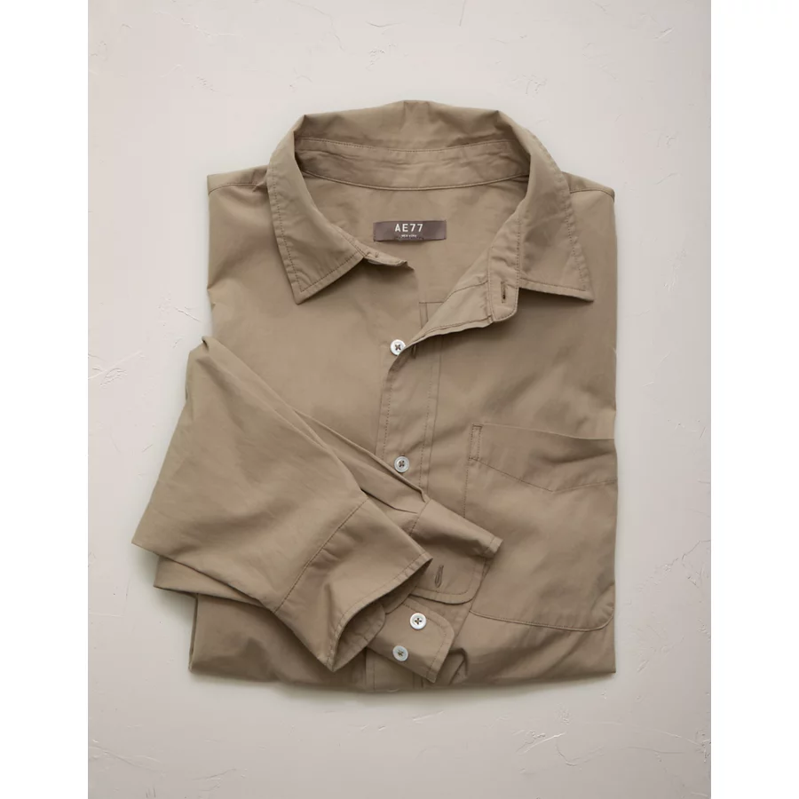 AE77 Premium Relaxed Striped Poplin Button-Up Shirt – Taupe
