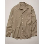 AE77 Premium Relaxed Striped Poplin Button-Up Shirt - Khaki