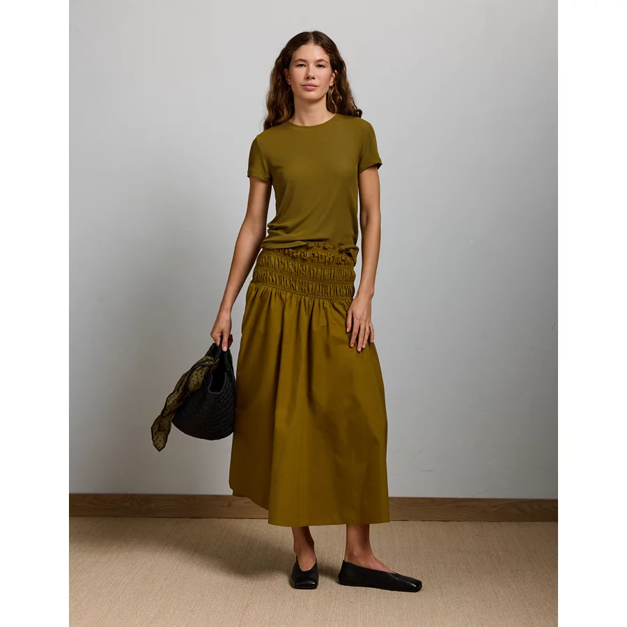 Soft, drapey woven fabric with stretchClassic jean-inspired pocket styling 61% Cotton, 18% TENCEL™ Lyocell, 20% Recycled Cotton, 1% ElastaneMachine washImported