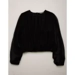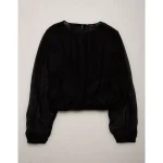 AE77 Premium Silk Bubble Blouse – Black
