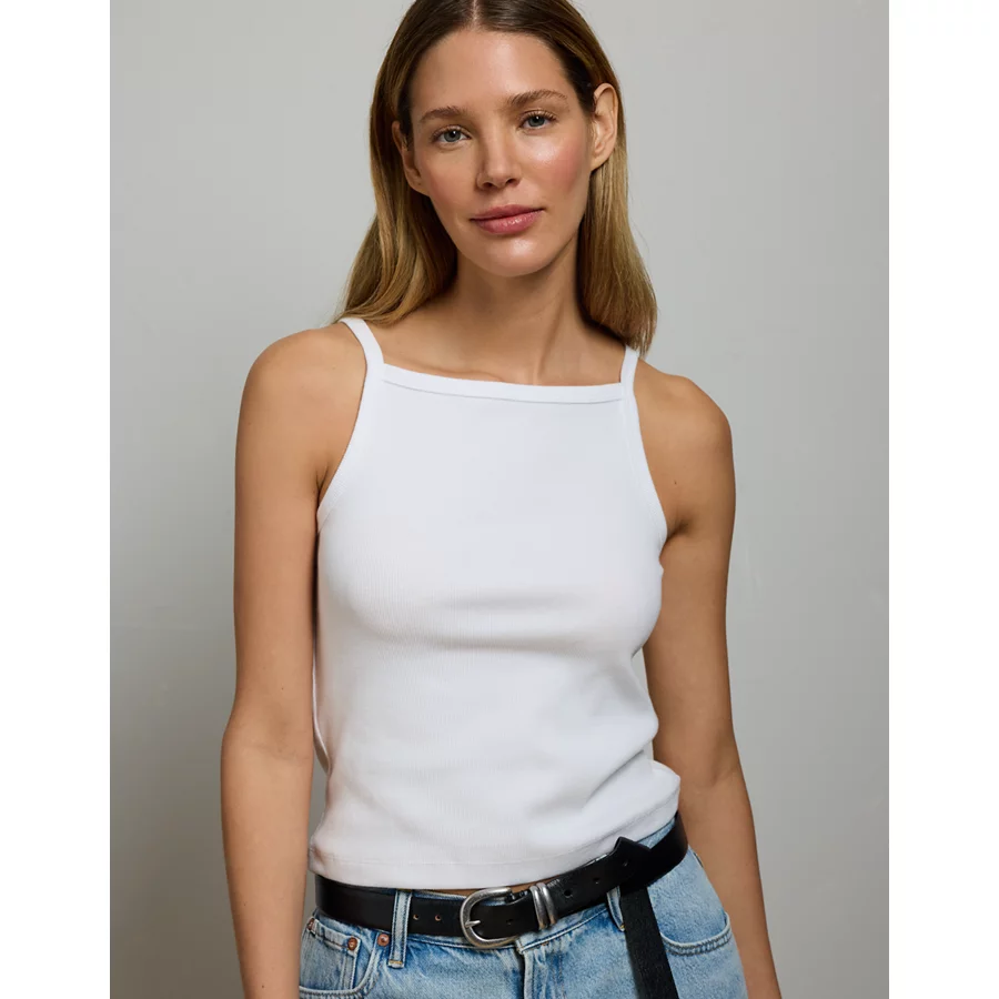 AE77 Premium Straight Neck Tank Top – White