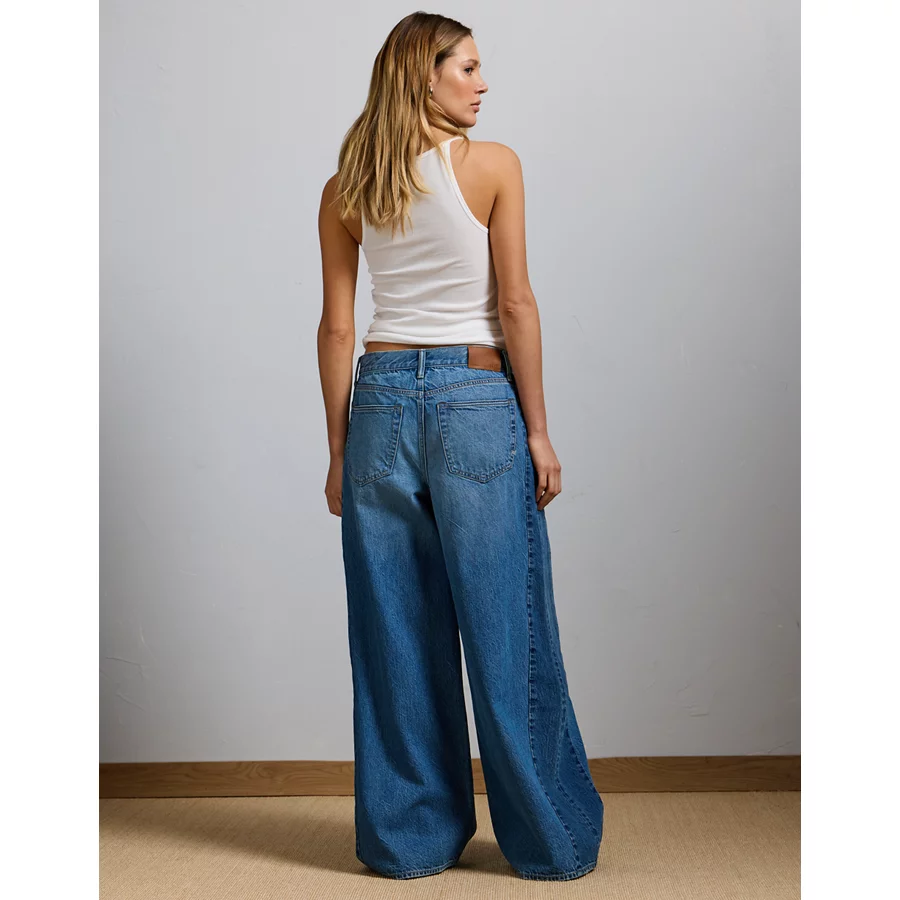 AE77 Premium Super Wide Side Stripe Jean – Medium Wash