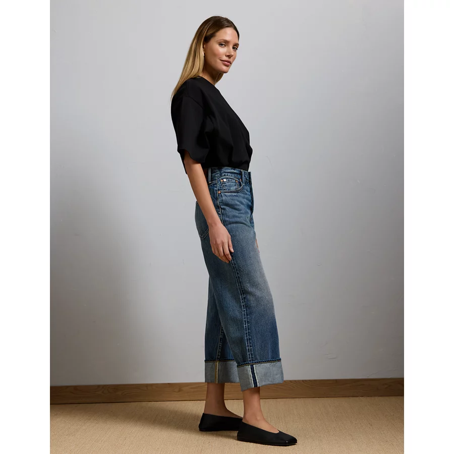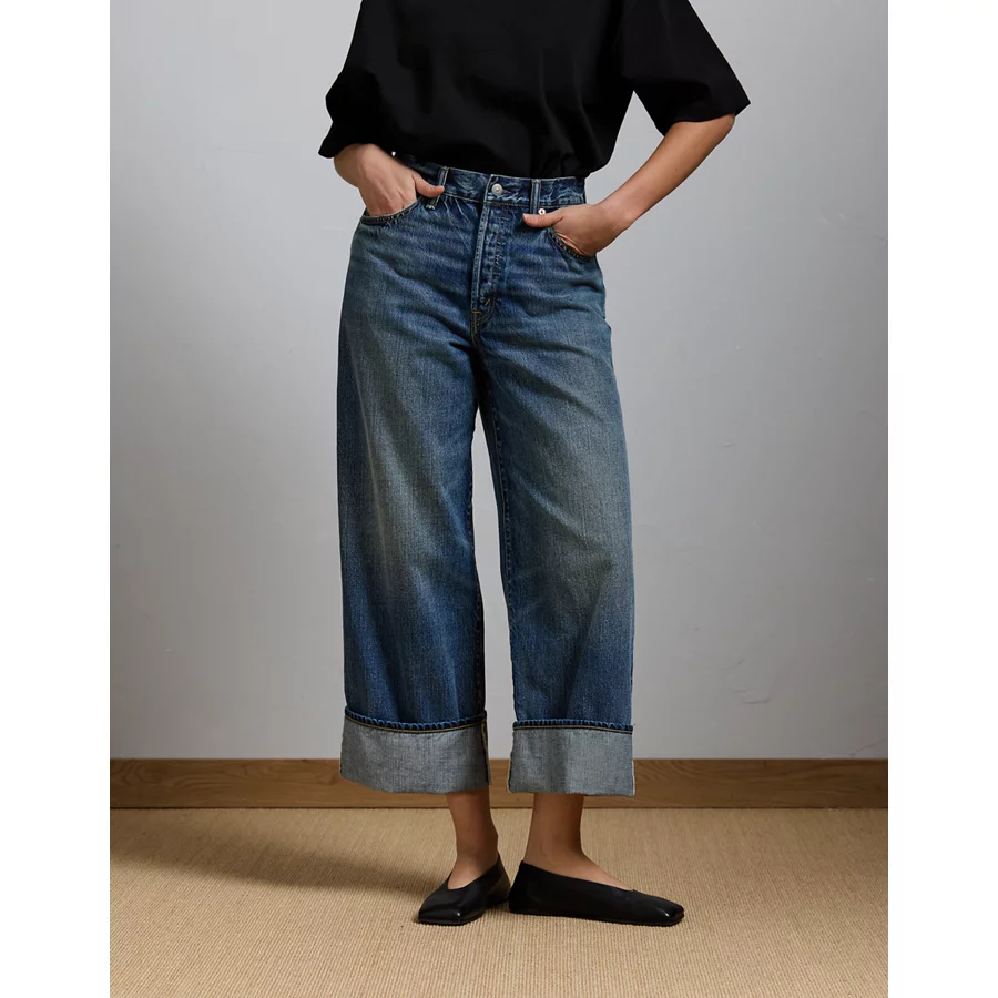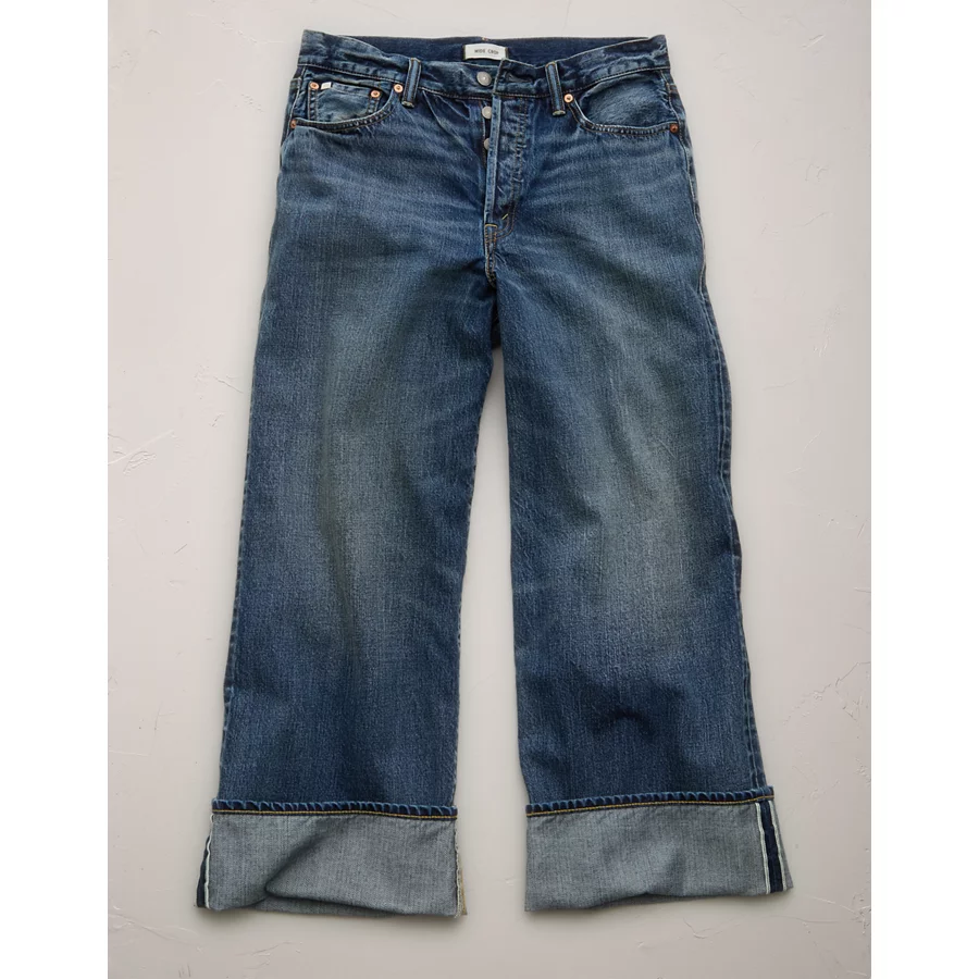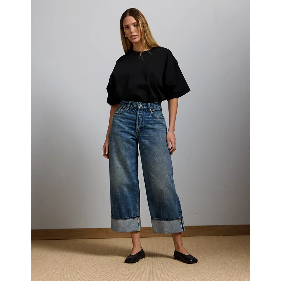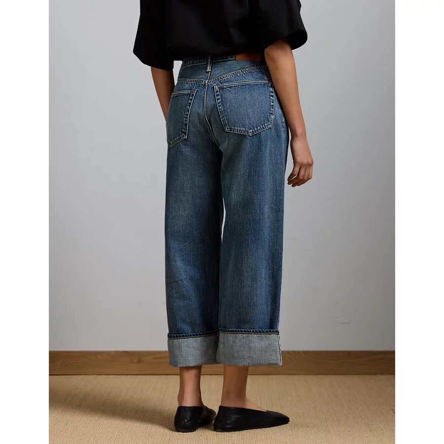 AE77 Premium Wide Crop Cuff Jean – Medium Wash