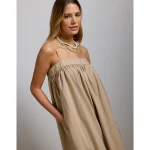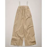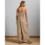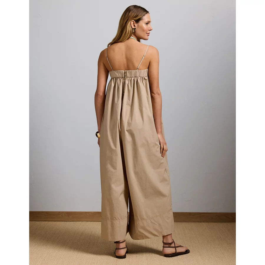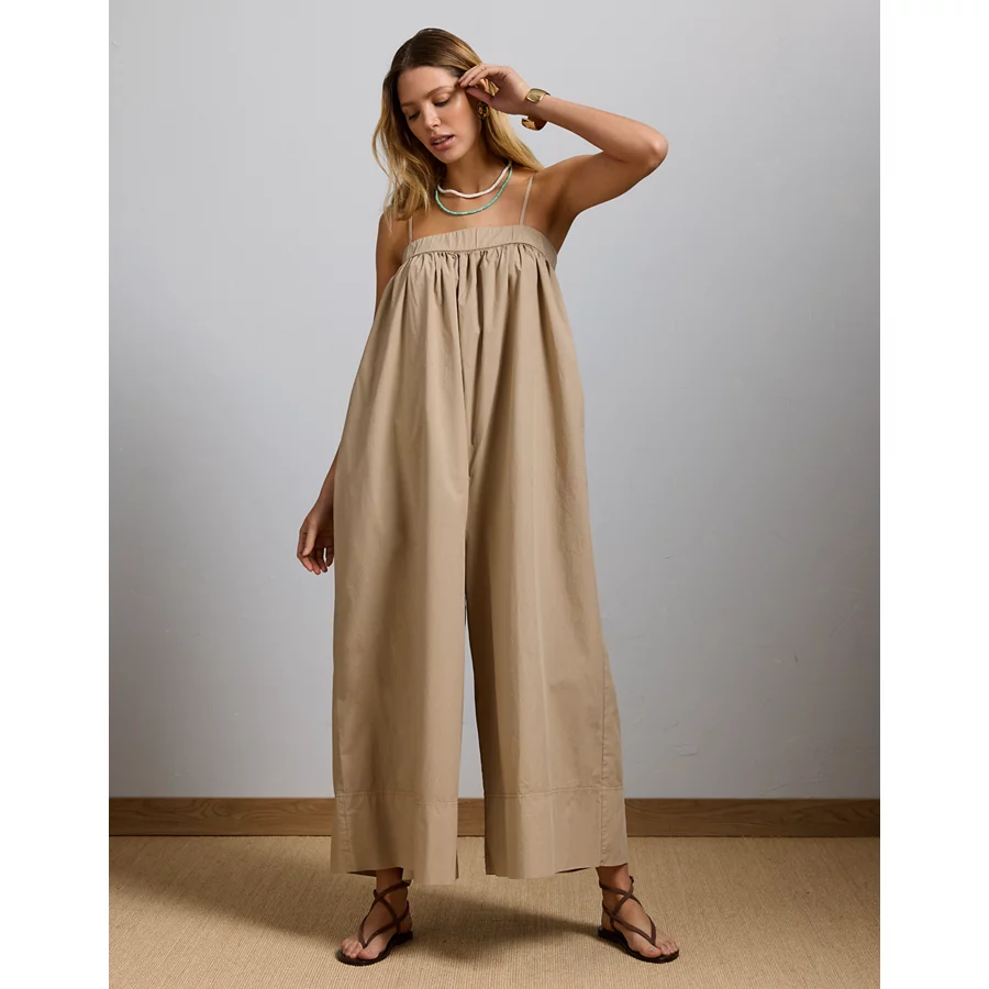 AE77 Premium Wide-Leg Cropped Poplin Jumpsuit – Khaki