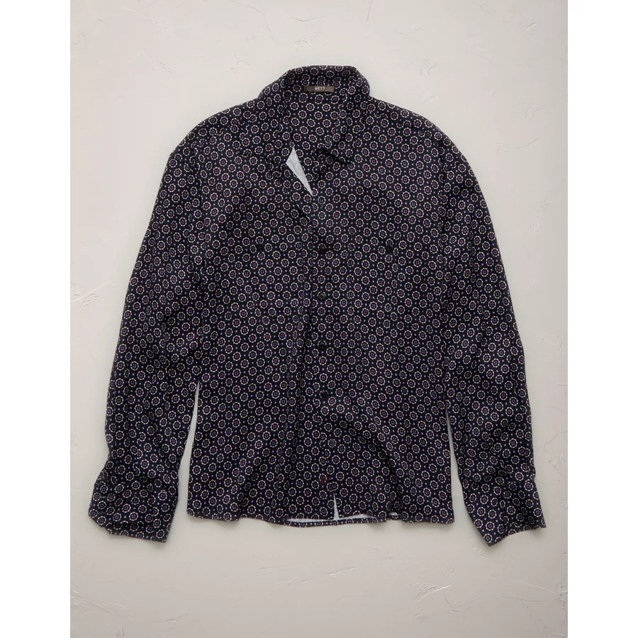 AE77 Relaxed Button-Up Printed Shirt – Blue