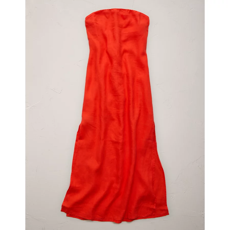 AE77 Strapless Linen Midi Dress – Orange