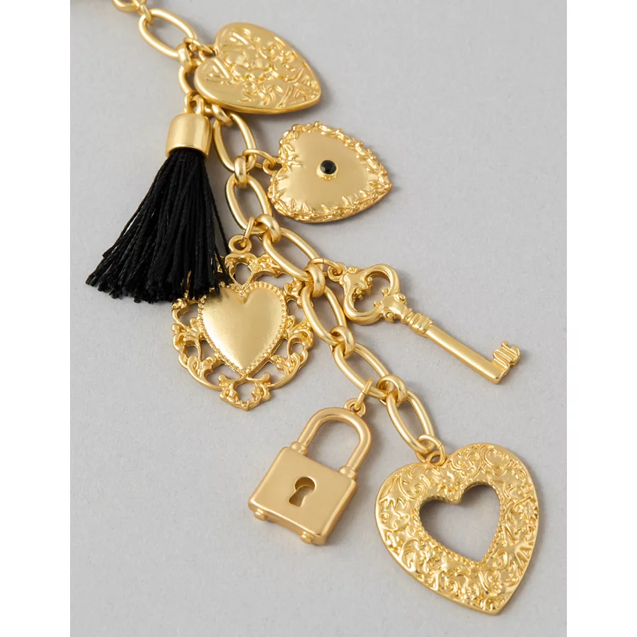 Linear chain with heart & key locket charms