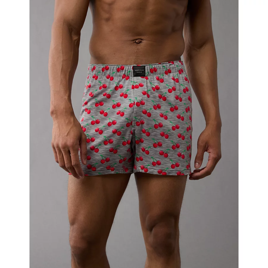 AEO Men’s Cherries Slim Knit Ultra Soft Boxer Short – Gray