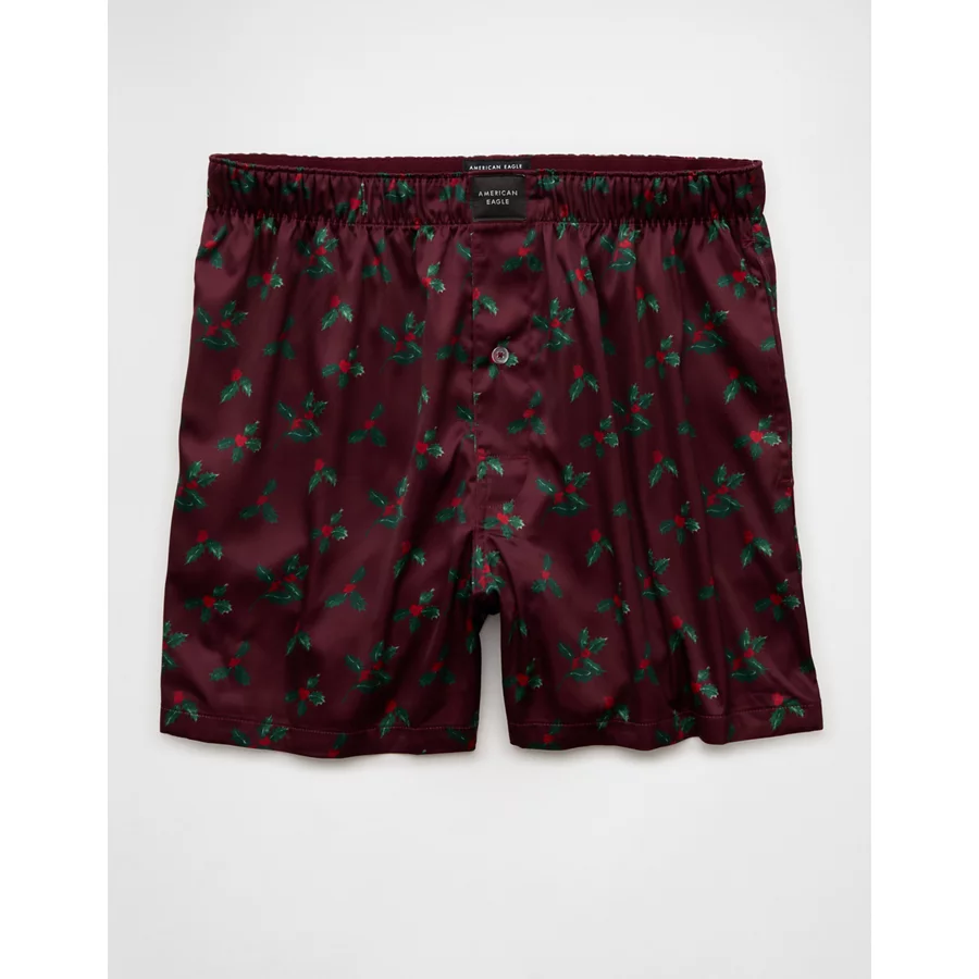 AEO Men’s Holly Satin Pocket Boxer Short – Burgundy