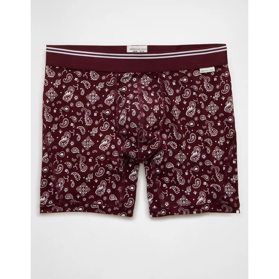 AEO Men’s Paisley 6″ Ultra Soft Boxer Brief – Burgundy