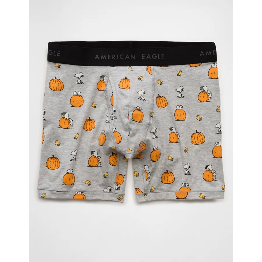 AEO Men's Snoopy Pumpkin 6" Ultra Soft Boxer Brief - Charcoal