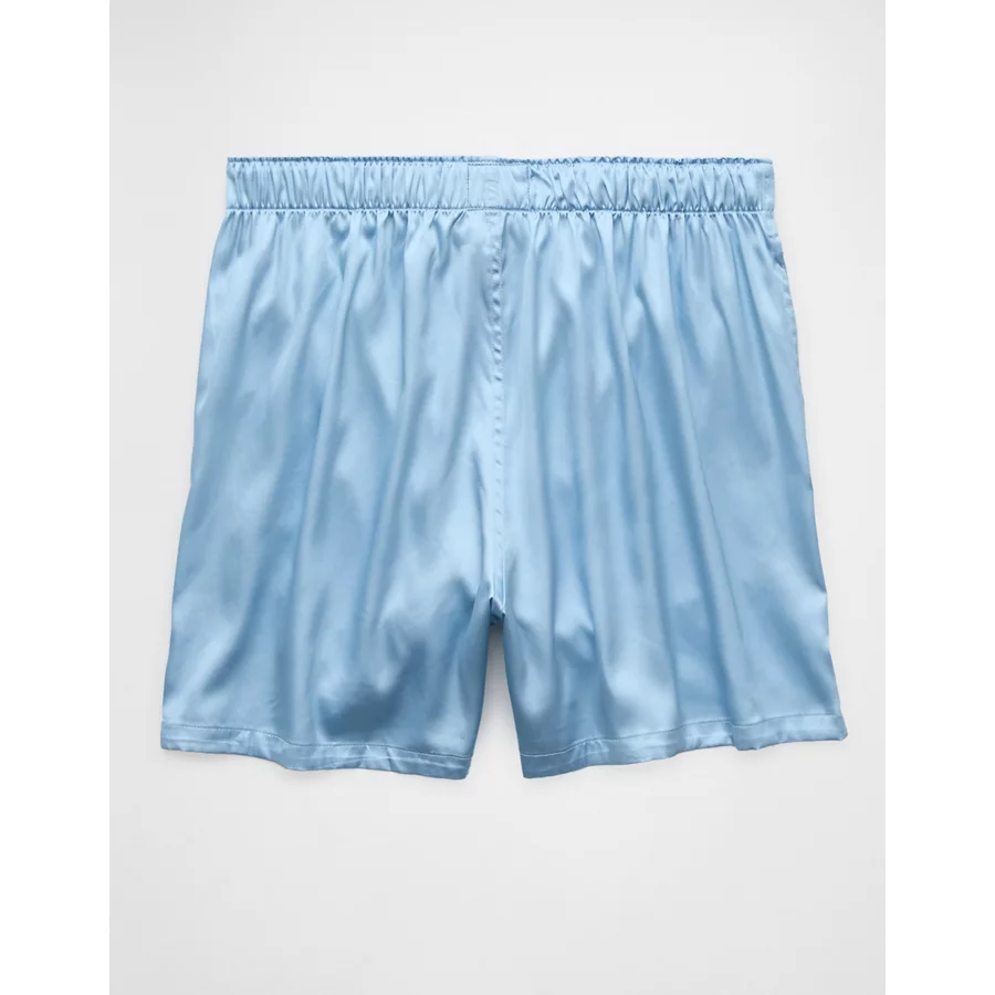 AEO Men’s Solid Satin Pocket Boxer Short – Blue Breeze