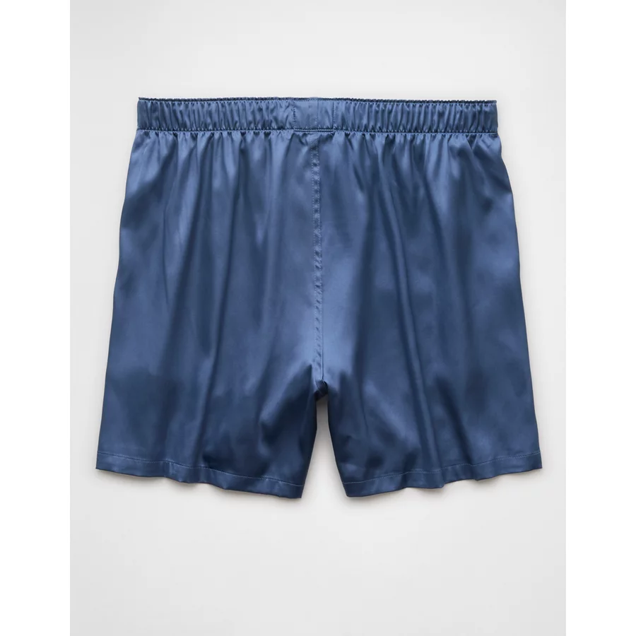 AEO Men's Solid Satin Pocket Boxer Short - Blue