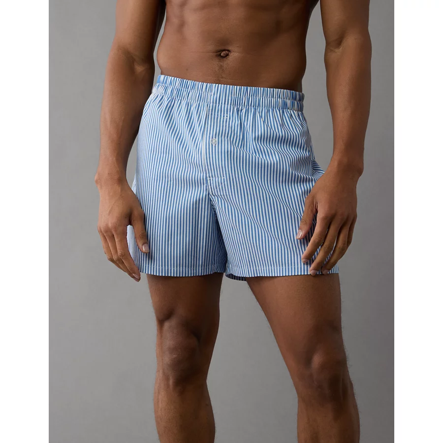 AEO Men’s Striped Poplin Pocket Boxer Short – Light Blue
