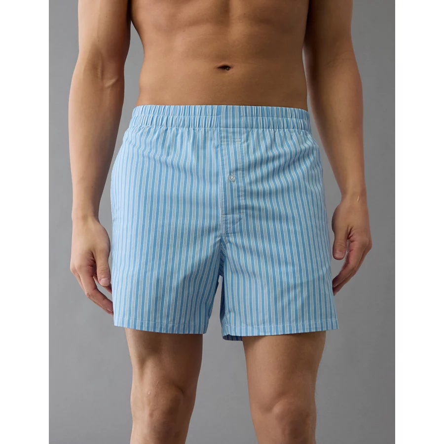 AEO Men’s Striped Poplin Pocket Boxer Short – Light Blue