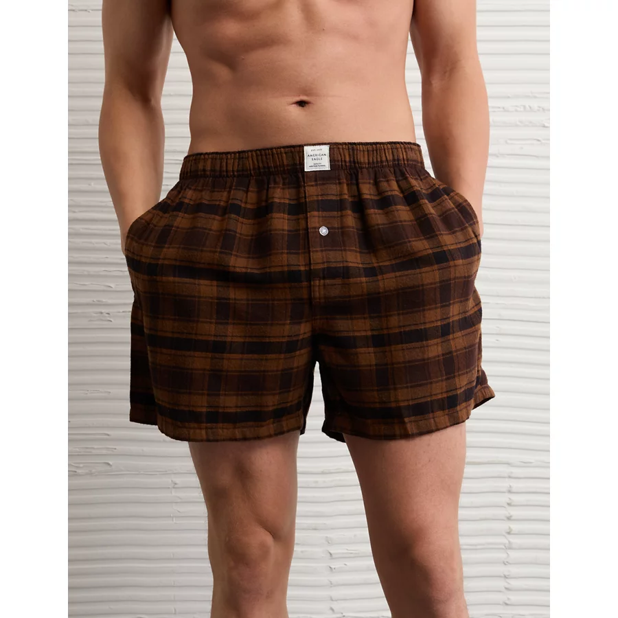 AEO Plaid Stretch Pocket Boxer Short – Brown