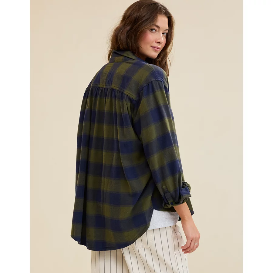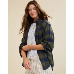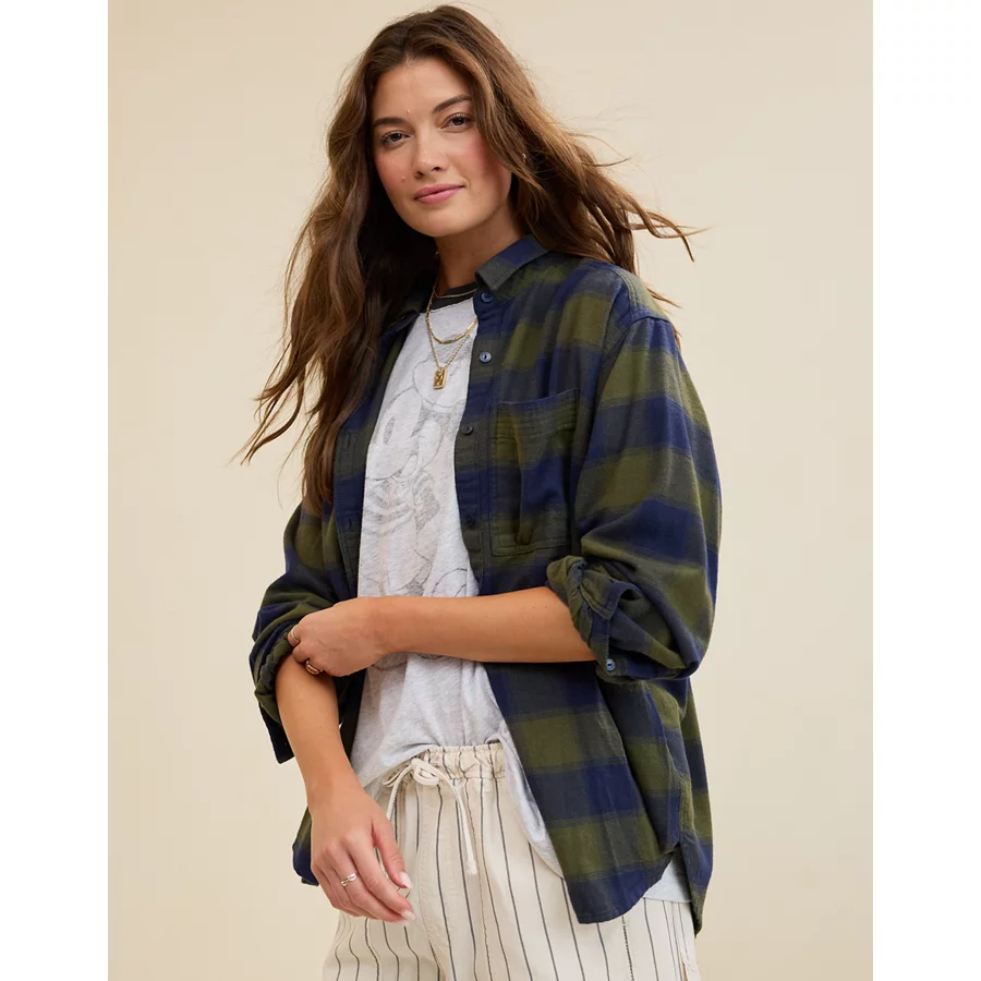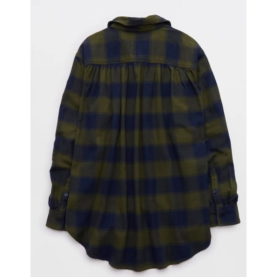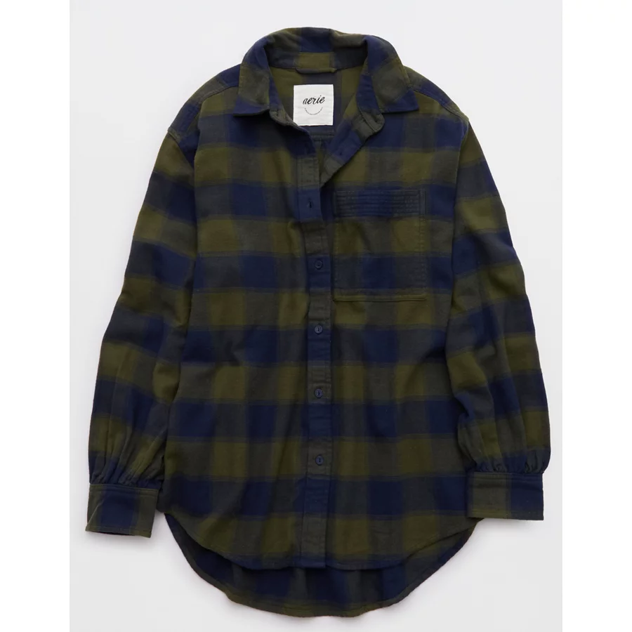 Aerie Anytime Fave Flannel Button Down Shirt – Military Green