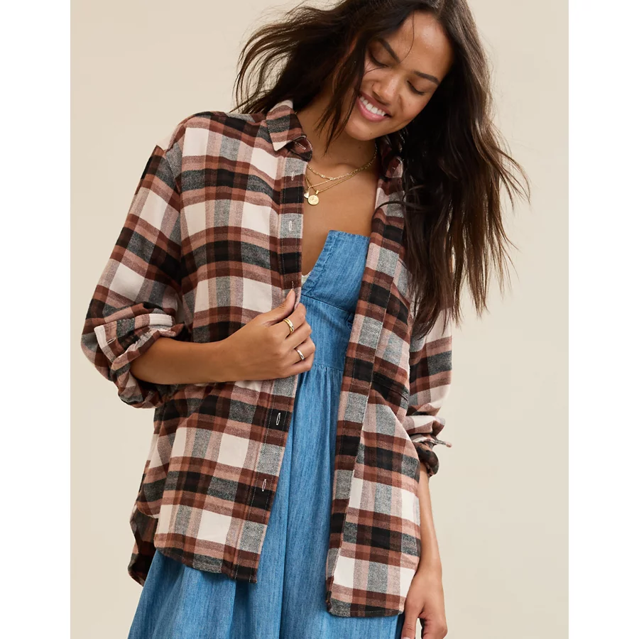 Aerie Anytime Fave Flannel Button Down Shirt – Soft Muslin