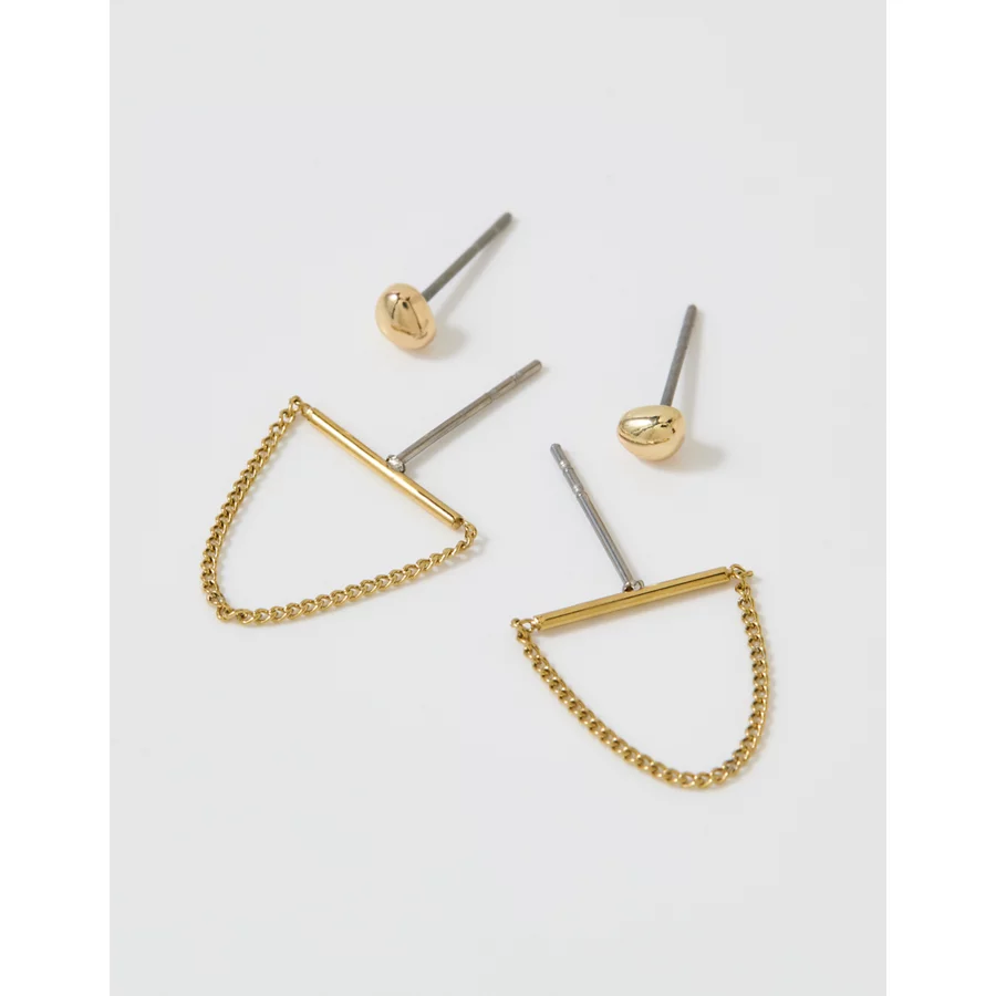 Aerie Bar And Chain Earring 2-Pack – Gold