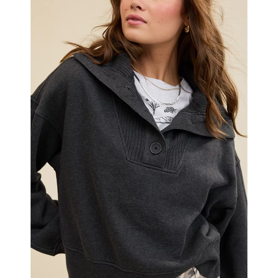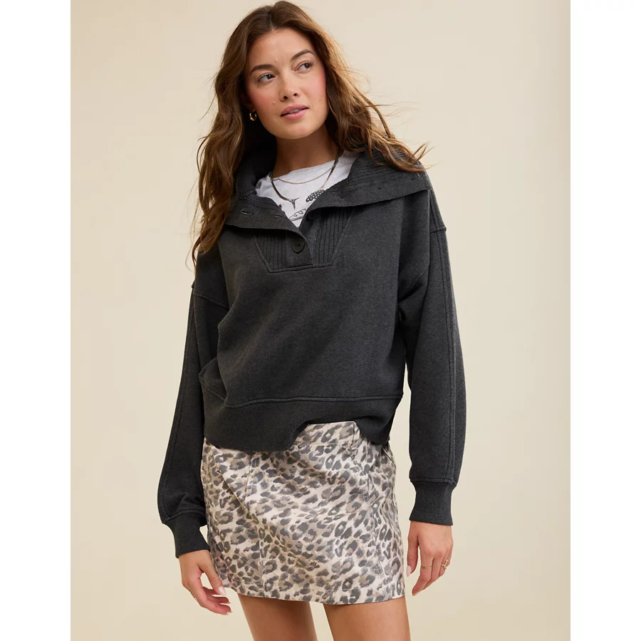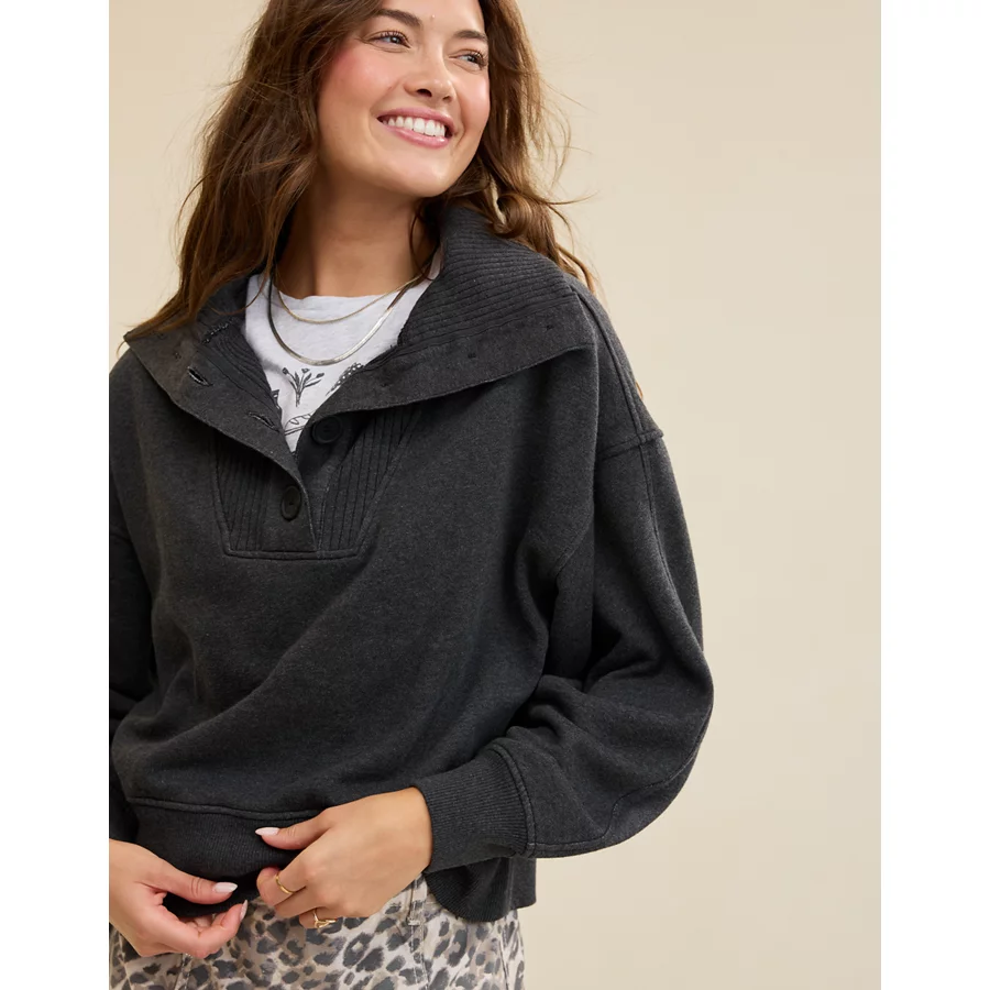 Aerie Best Button Sweatshirt – Charcoal Heather Gray