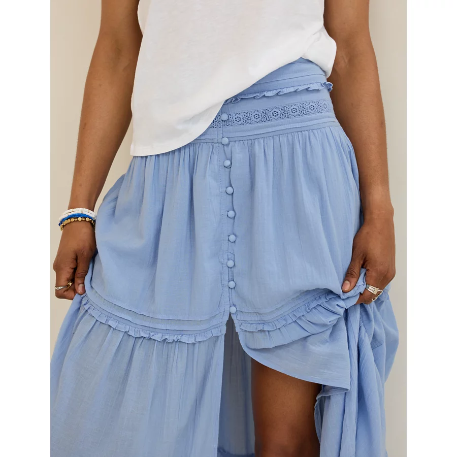 Aerie Boho Button Maxi Skirt – Monaco Blue
