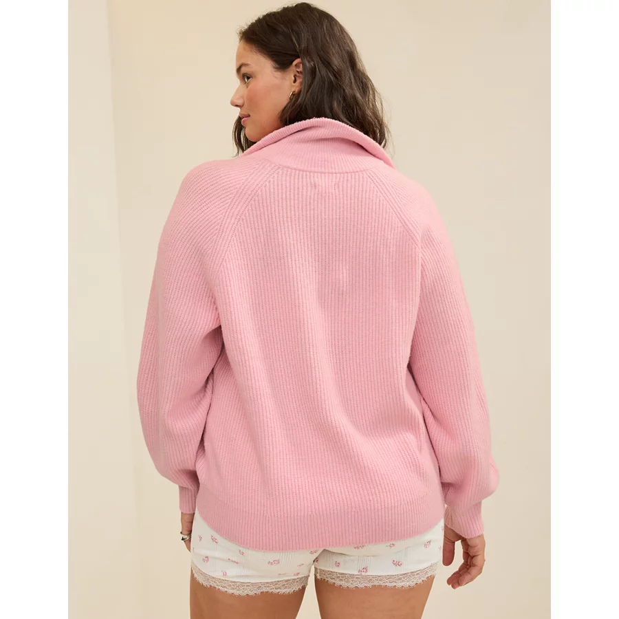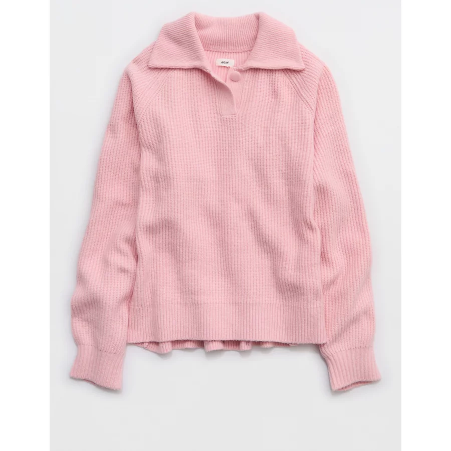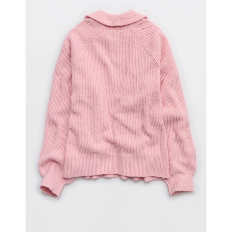 Aerie Classic Quarter Button Sweater - Heather Fawn